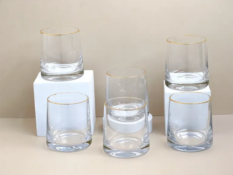 حافة ذهبية كلاسيكية: لمسة دقيقة من اللون الذهبي على حافة الكأس تمنح تصميماً “مينيماليست” يجمع بين العصرية والكلاسيكية.