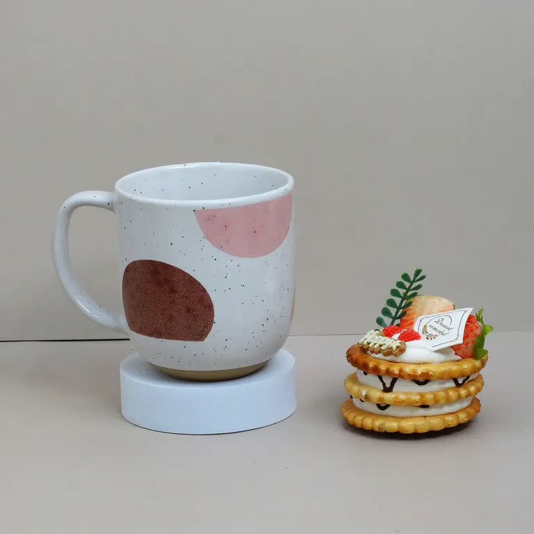 أضف لمسة من الفن المعاصر إلى روتينك اليومي مع هذا المج الأنيق المصنوع من البورسلان الفاخر. يتميز بتصميمه المنقط الفريد مع أشكال هندسية بألوان هادئة، مما يجعله القطعة الأجمل في ركن القهوة الخاص بك أو على مكتبك.