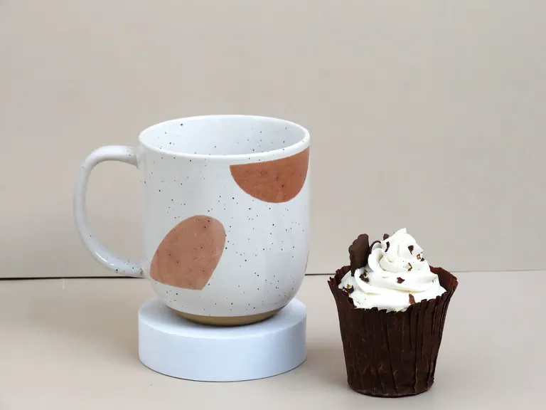 أضف لمسة من الفن المعاصر إلى روتينك اليومي مع هذا المج الأنيق المصنوع من البورسلان الفاخر. يتميز بتصميمه المنقط الفريد مع أشكال هندسية بألوان هادئة، مما يجعله القطعة الأجمل في ركن القهوة الخاص بك أو على مكتبك.